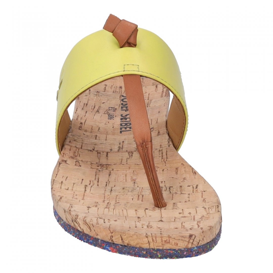Do letního horka se úplně perfektně hodí korkové žabky ve svěží citrónové barvě. Pěkně sedí na noze, jsou pohodlné a samozřejmě skvěle vypadají. A navíc mají zajímavou podešev vyrobenou z recyklované gumy.